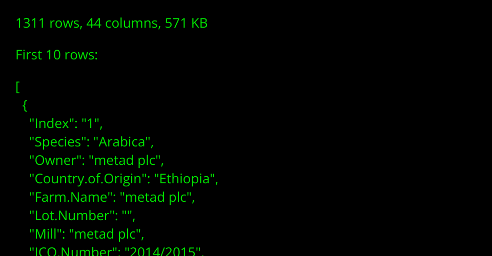 These data were scraped from the Coffee Quality Institute by James LeDoux, and are currently hosted in his GitHub repo. The data originally included just over 1,300 ratings; the last 300 or so were removed in order to fit the criteria for this project.