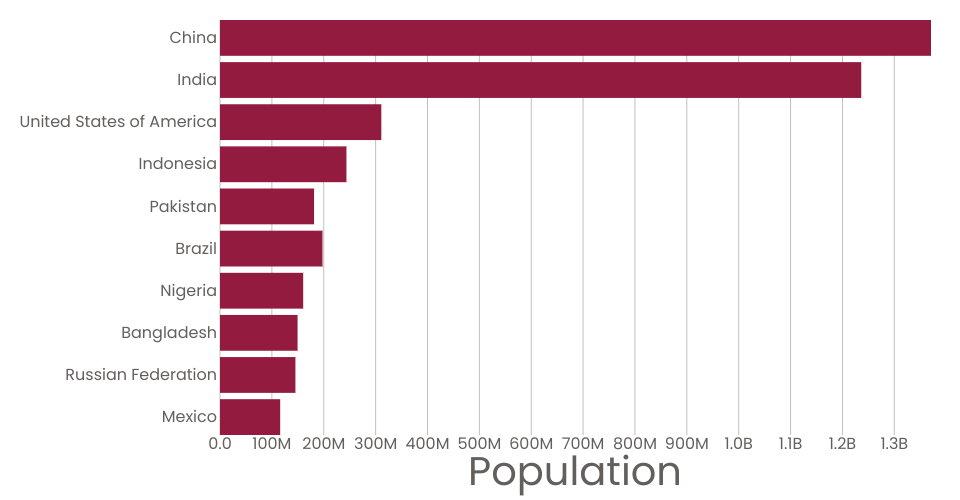 A program that shows the top 10 most populous countries as a bar chart. This bar chart adds a bit of noise as you scroll your mouse across it.