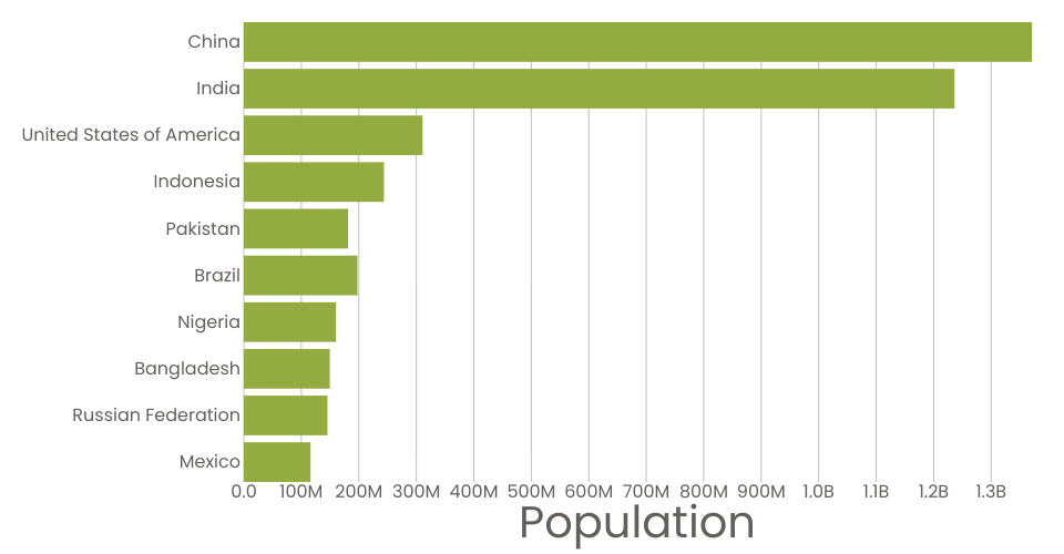 A program that shows the top 10 most populous countries as a bar chart.