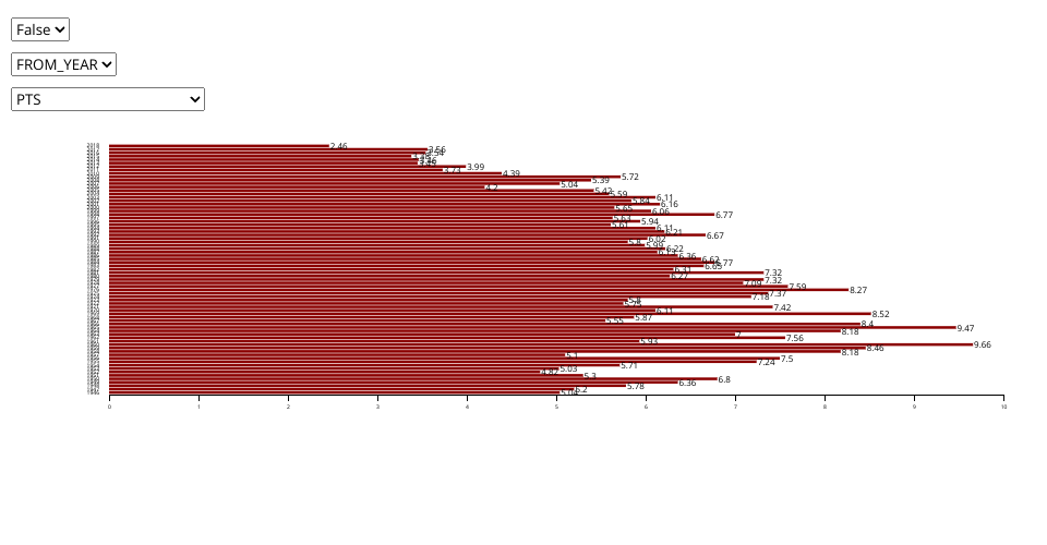 nba career performance with filters and grouping
