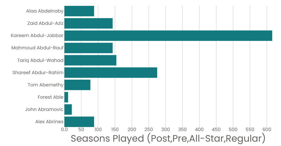Nba Players and how long they have played for, some issues exist with the data as formated.