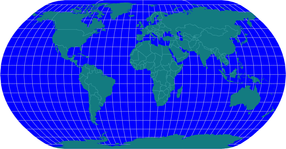 A world map showing country boundaries from World Atlas TopoJSON, polished for visual style, including graticules.