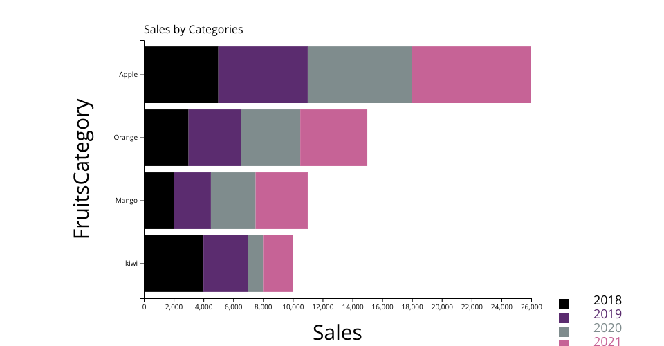 This stacked bar chart gives the percentage of each rating level within different movie genres. The aim is to show the impact of genre on movie ratings. When the mouse hovers over each bar, you can see pop-ups of accurate percentage of each rating level within each genre. Total percentage is 1, representing 100%.