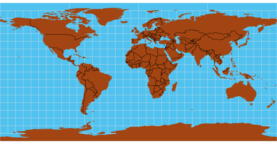 A world map showing country boundaries from World Atlas TopoJSON, polished for visual style, including graticules.