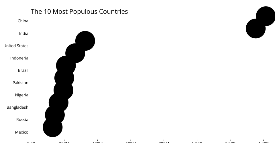 This bar chart show the populate of the 10 most populous contries. The data come from year 2018 estimate in World Population Prospects 2017