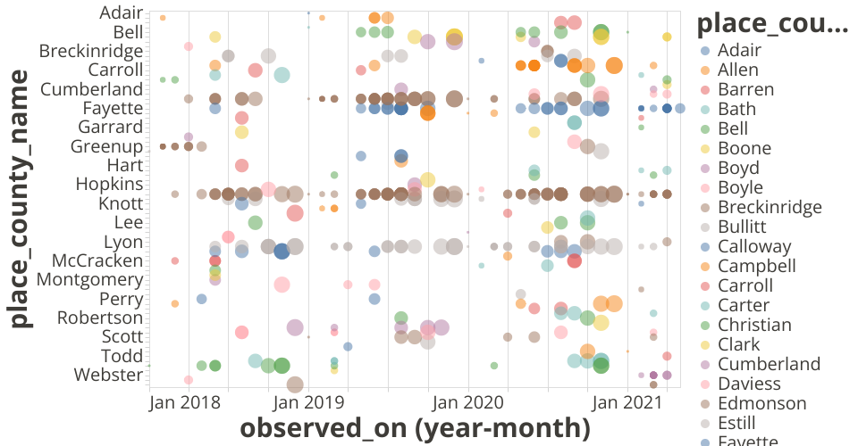 Y-Axis: Kentucky Counties X-Axis: Date Observed on (Year-Month)
