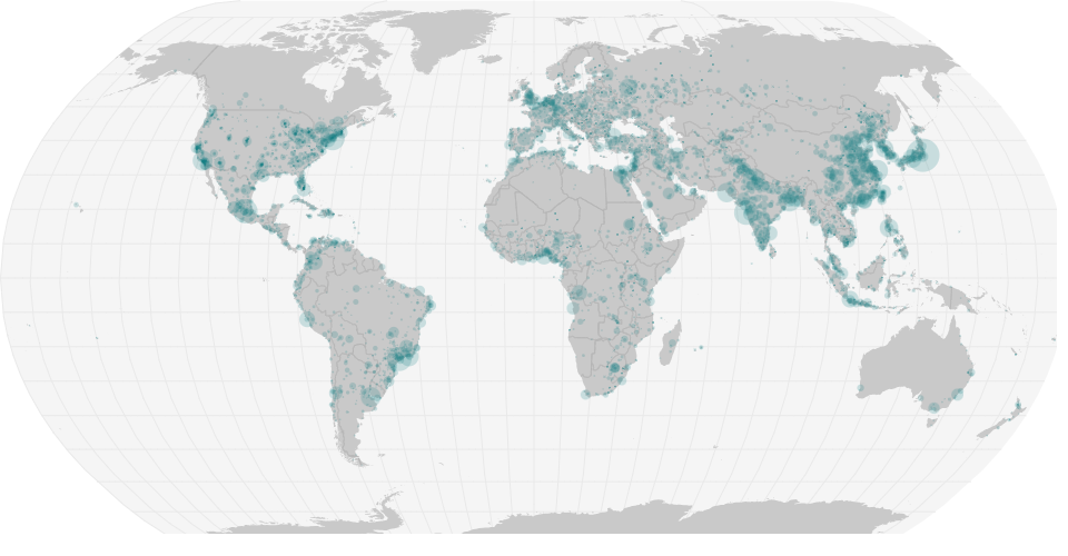 World map... [Population Data] https://gist.githubusercontent.com/curran/13d30e855d48cdd6f22acdf0afe27286/raw/0635f14817ec634833bb904a47594cc2f5f9dbf8/worldcities_clean.csv