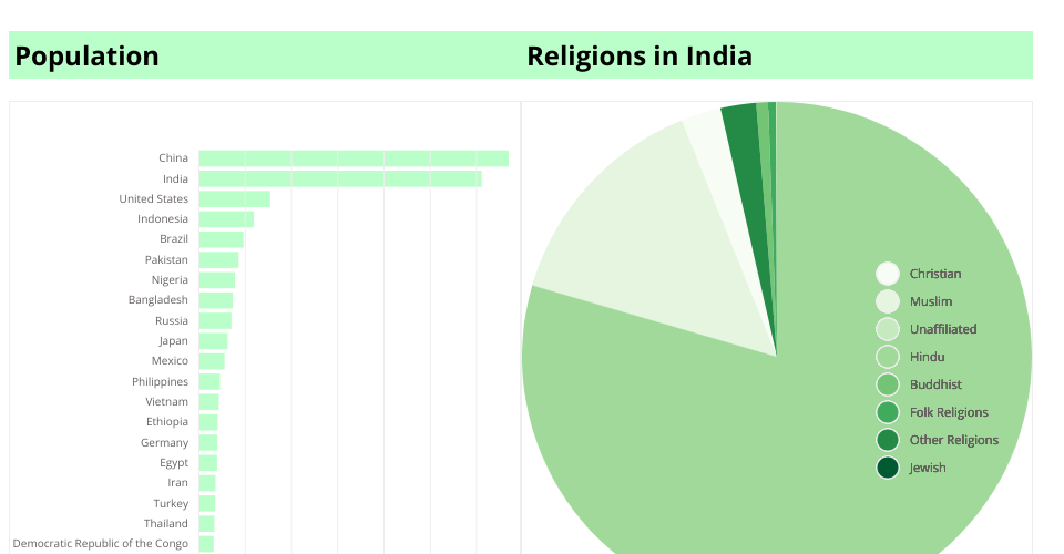 Hover on any country bar in the bar chart to visualize the religions distributed in the correspoding country as pie chart.
