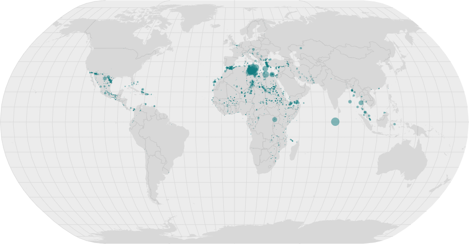 A world map showing country boundaries from World Atlas TopoJSON, polished for visual style, including graticules.