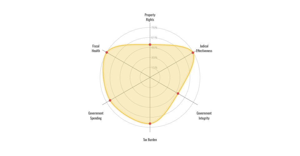 • The radar chart is flexible with the number of axis. It is not fixed, so you can have as many axises as you like. Here I have 12 indexes describing the economic freedom. Hence, my radar chart is a 12-axis chart.