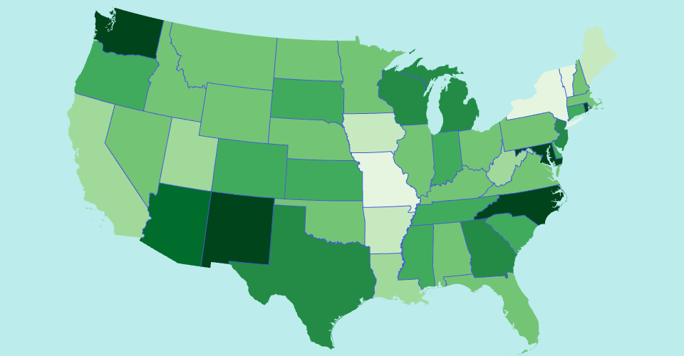 This visualization is the attempt to use the d3 and React tools we learned from the class to draw US states choroplehs map. The input value is a stateRate.tsv data in additional to TopoJson map data.