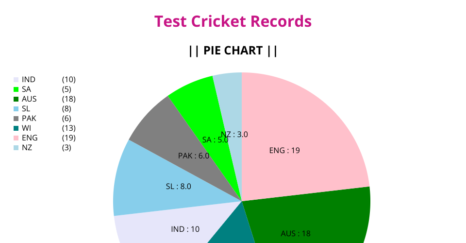 This is a pie chart representing number of players from each country in top test records of cricket.