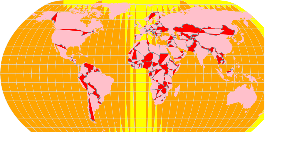 A world map showing country boundaries from World Atlas TopoJSON, polished for visual style, including graticules.