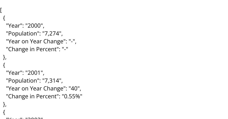 It shows the population of the town Cohasset MA each year and how much it changes by.