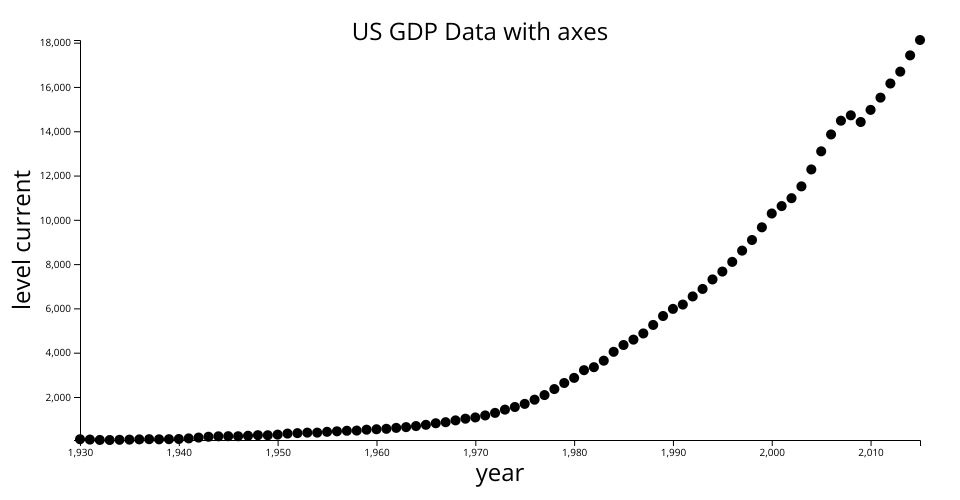 Gross Domestic Product (GDP) of the United States (US) both nominal and real on an annual and quarterly basis. Annual data is provided since 1930 and quarterly data since 1947. Both total GDP (levels) and annualized percentage change in GDP are provided. Both levels and changes are available both in current dollars (nominal GDP) and in chained 2009 dollars (real GDP). Data is sourced from US Government’s Bureau of Economic Analysis (BEA) and provided in standardized CSV.