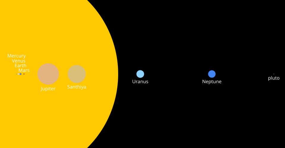 A visualization of the solar system. Relative sizes to scale, distances not to scale.