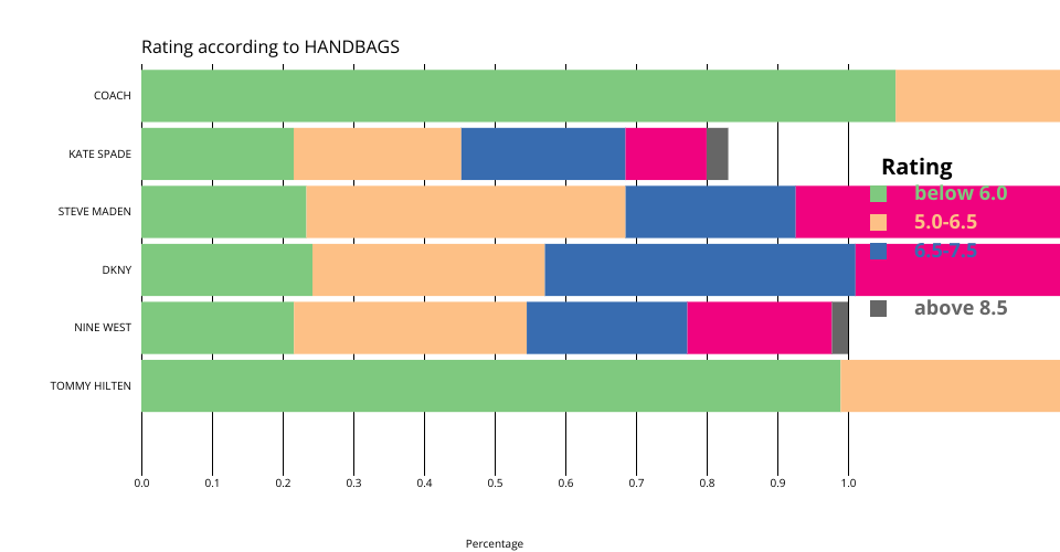This stacked bar chart gives the percentage of each rating level within different movie genres. The aim is to show the impact of genre on movie ratings. When the mouse hovers over each bar, you can see pop-ups of accurate percentage of each rating level within each genre. Total percentage is 1, representing 100%.