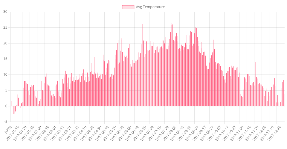 Bar graph that displays dates and average temperatures of seattle on the given day