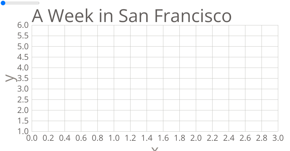 This scatter plot shows one week of temperature (in degrees Celcius) in San Francisco. The data comes from Data Canvas - Sense Your City.