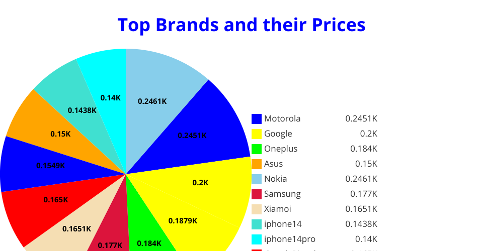 Pie Chart for top brands and their prices