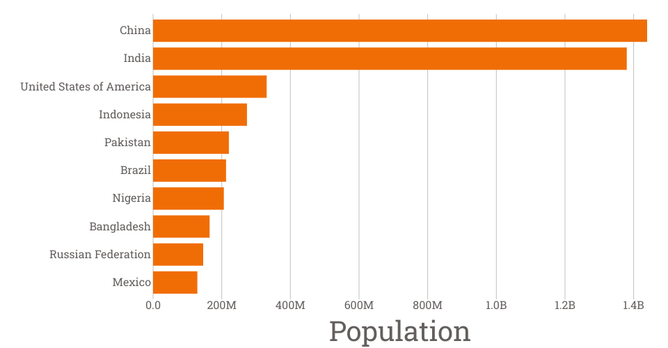 A program that loads in some data about country populations using D3 utilities, and uses React to render the data as a bar chart.