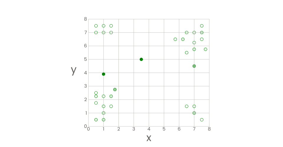 The opacity of each point depends on it's LOF value, i.e. the higher LOF value is, the darker the point is, which means the more "outlier" this point is.