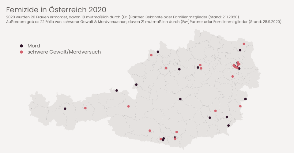 Femizide, Mordversuche und Fälle von schwerer Gewalt in Österreich im Jahr 2020 - erhoben vom Verein Autonome Frauenhäuser in Österreich.