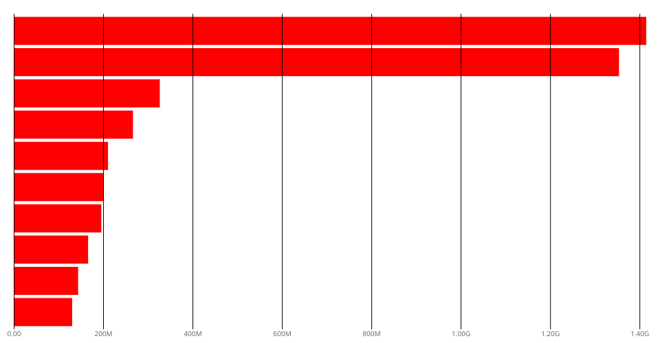 This bar chart shows population of the top 10 most populous countries. The data comes from the year 2018 estimate in United Nations: World Population Prospects 2017. It also demonstrates customization of D3 axes.