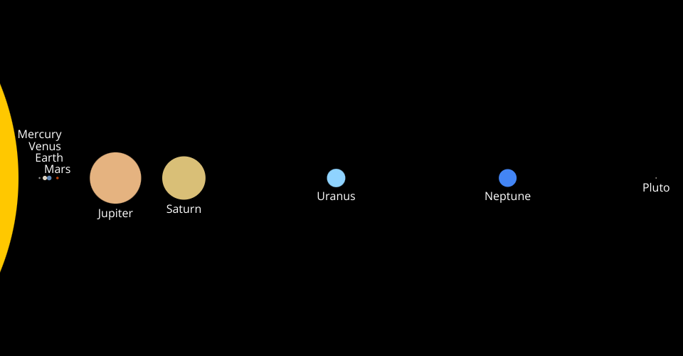 A visualization of the solar system. Relative sizes to scale, distances not to scale.