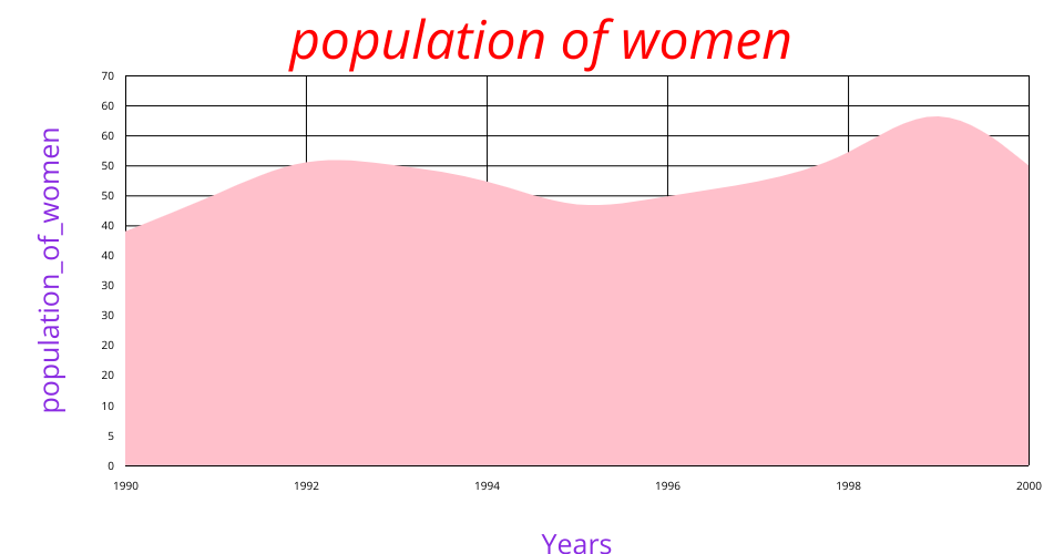 This line chart shows the population of women in the time period of 1990 to 2000