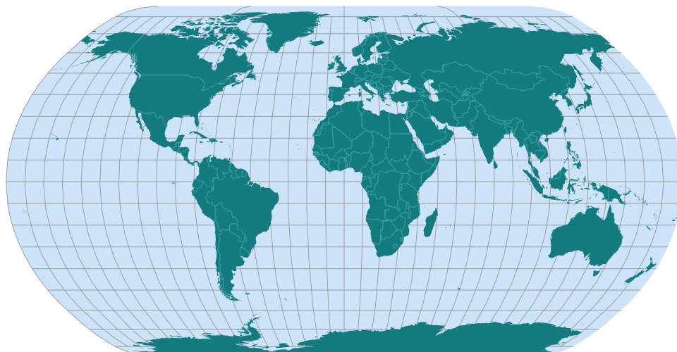 A world map showing country boundaries from World Atlas TopoJSON, polished for visual style, including graticules.