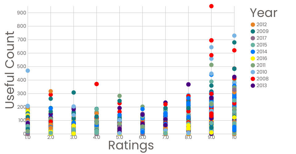 Interactive Color Legend Scatterplot to determine Useful Count of rating per year