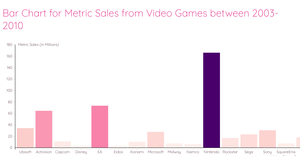 Dot Plot of Metric Sales from Video Game Publishers form 2003-2009. Note: The data was modified to simplify the coding process Dataset from :https://corgis-edu.github.io/corgis/csv/video_games/