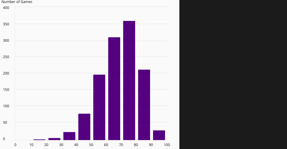 Histogram of Metric Sales from Video Game Publishers form 2003-2009. Note: The data was modified to simplify the coding process Dataset from :https://corgis-edu.github.io/corgis/csv/video_games/