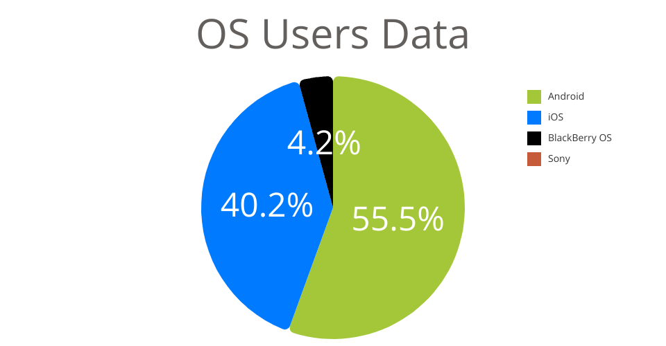 This pie chart shows the distribution of popular operating system users for Android, iOS and BlackBerry OS