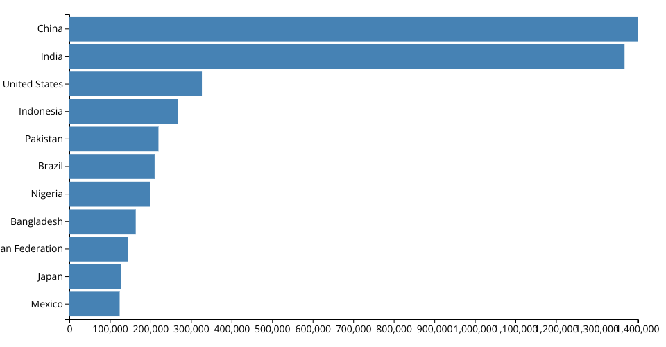 This chart shows population of the 10 most populated countries in the world as per 2018. Data taken from World Bank Group