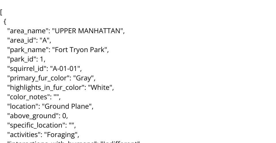 collected about squirrel sightings across 24 parks in New