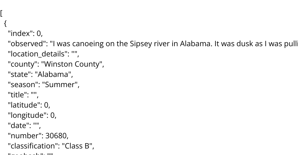 and pulls from Bigfoot Field Researchers Organization (BFRO)