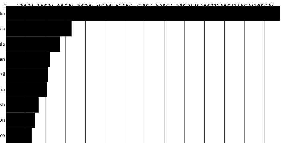 A program that shows the top 10 most populous countries as a pathetic bar chart with no axes.