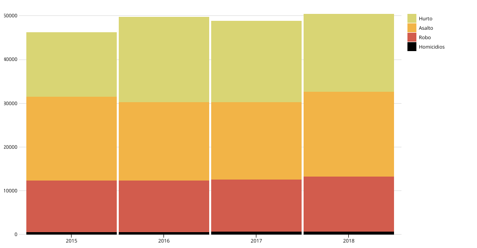 Top 4 delitos en Costa Rica. Periodo 2015-2018.