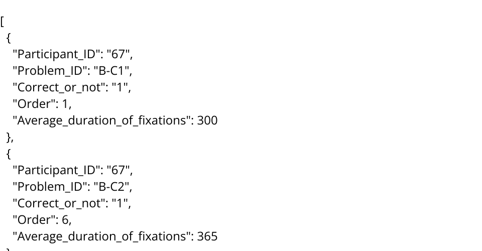 This is a dataset from WPI MAPLE Lab study conducted in 2021-2022. 86 undergraduate students solved math problems in the lab and their eye-movements during the solving process were collected with eye-tracking software. Each participant solved 24 problems: 12 with and 12 without brackets.
