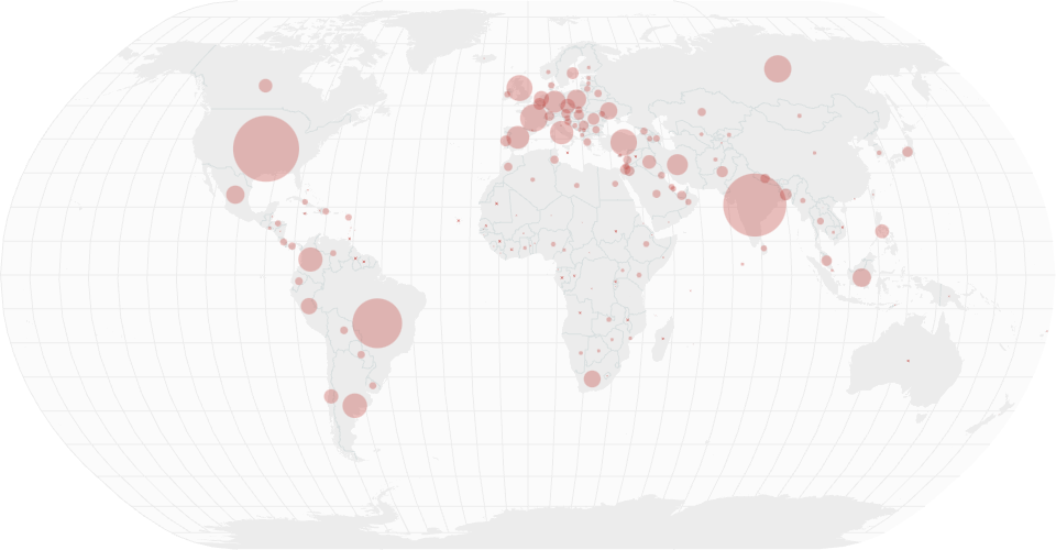 Country boundaries from World Atlas TopoJSON, polished for visual style, including graticules.