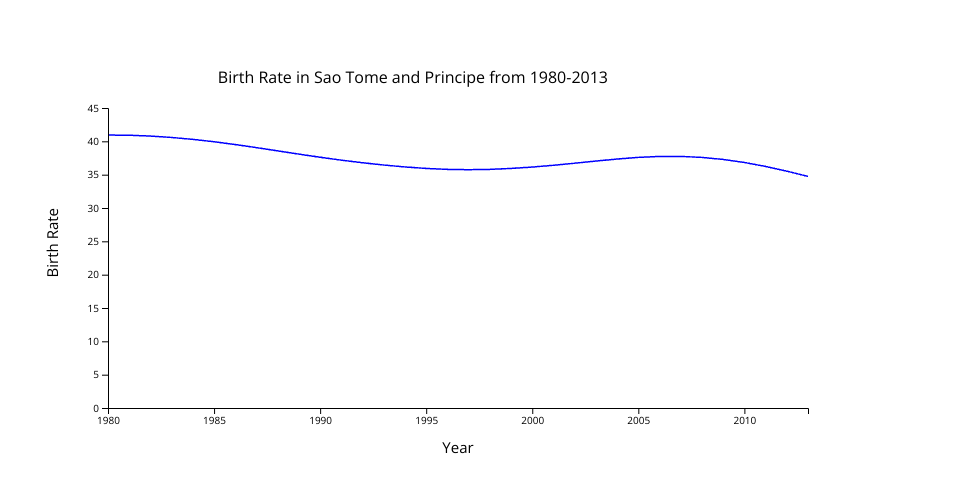 CSV file has been edited to only contain the birth rate of the Sao Tome and Principe region from years 1980-2013.