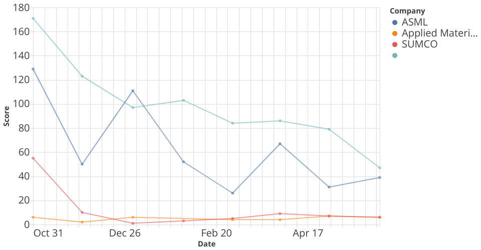 Hover over a line and it will be bolded and showing the exact average number of each data point.