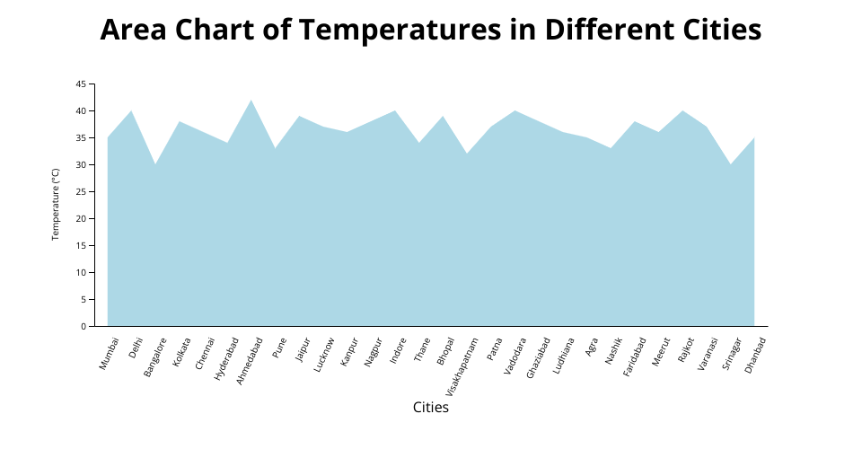 Area chart of temperature of different cities.