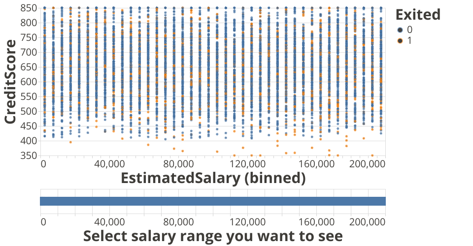 You can select a range of salaries on the top graph to view that in the below graph. I have binned the salaries into 50 bins.
