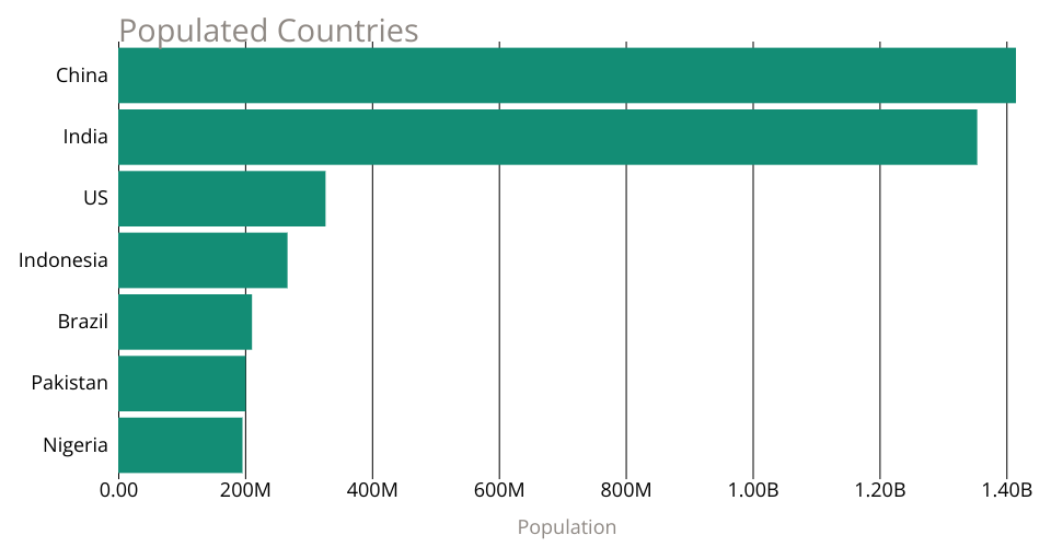 A program that shows the top 10 most populous countries as a bar chart.