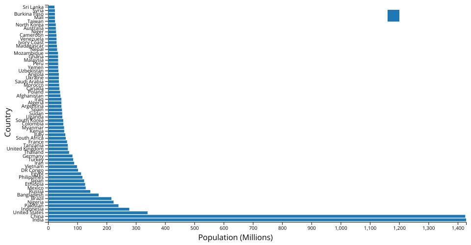 Stacked bars showing estimated religion breakdown of the most populous 20 countries in 2010. Based on an example from the tutorial Splitting Charts. Interactions: