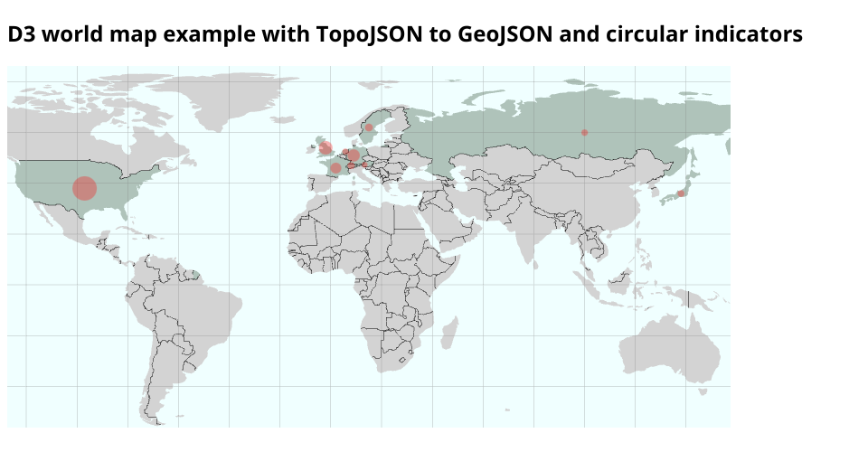 D3 world map example with TopoJSON to GeoJSON and circular indicators