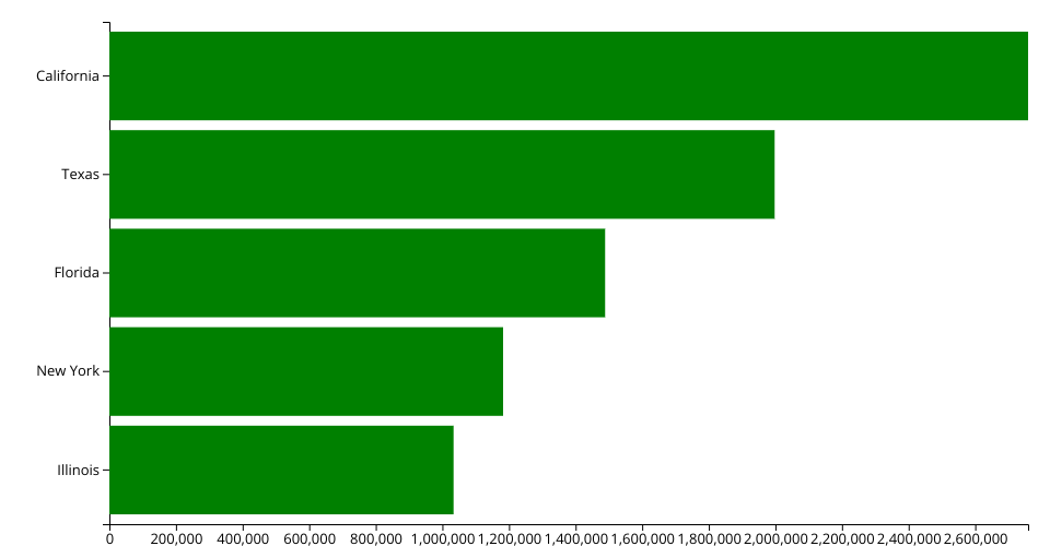 This bar chart shows the total number of Covid-19 cases in the top 5 US states ( up to January 12th of 2021). The data comes form The worldmeter